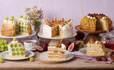アフタヌーンティー・ラブアンドテーブルに栗とシャインマスカットの秋限定ミルクレープが登場します。紅茶が香るミルクティーホイップとほっくりと甘い栗をあわせ、シャインマスカット、いちじく、栗をトッピングした「マロンミルクティーのミルクレープ」と、ラム酒入りの濃厚なマロンクリームやコクのあるディプロマットクリーム、細かく刻んだ栗を重ねた「マロンのミルクレープ」、爽やかな甘さとパリッとした食感が魅力のシャインマスカットを贅沢に使った「シャインマスカットのミルクレープ」の3種を提案します。