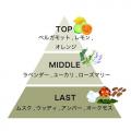 レモンやラベンダーのリラックス感あるスッキリとした香りに、金木犀の華やかで芳醇な甘さをミックス。ラストに上品なムスクの香りがふんわりと優しく包み込みます。