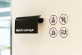 5階|イベント&ホスピタリティ空間 - 社内イベントや来客対応に特化した特別フロア。サインにはテクノフローワンのブランドカラーとロゴを取り入れ、ホスピタリティを演出しました。