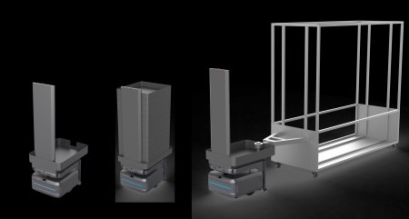 今回展示する「UP」は、工場や倉庫での日常業務を自動化する専用ユニットを搭載しています。床面の反射やフォークリフトが行き交う現場でも安全に稼働できる柔軟さを備えており、道具や部品、空段ボールの運搬から完成品の搬送までをスムーズに行うことができます。さらに、自律型AIを搭載しエレベーターとの自動連携が可能なため、複数階にわたる製造工程をシームレスにつなげ、生産性の向上にも寄与します。加えて、清掃や運搬を担うユニットも活用できることから、工場内の清掃を無人化してコスト削減を実現し、運搬業務のルーティン化によって生産効率の向上やコストの平準化にもつながります。
