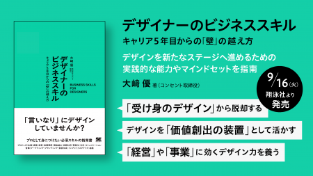 株式会社コンセント(本社:東京都渋谷区 代表:長谷川敦士 以下、コンセント)の取締役の大崎優による初の著書『デザイナーのビジネススキル キャリア5年目からの「壁」の越え方』(翔泳社刊)の発売が、2025年9月16日(火)と間近に迫りました。
