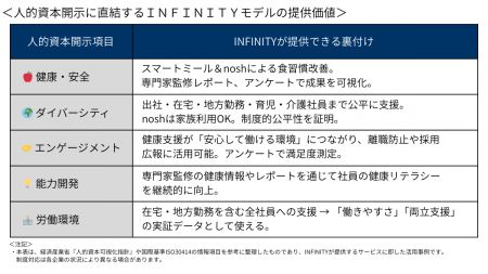 INFINITYは、制度対応を重視する大企業・自治体に向けて、「食支援×人的資本開示」標準モデルを