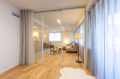 また、天井まで高さがあり空間の広がりを感じられるフルハイトドアや、突き板をあしらったカウカモオリジナルのキッチン、長さ3.6mのカップボードなど、細部までこだわり抜いているため、リノベーションの魅力を最大限にご体感いただけます。