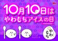 やわもちアイスに用いる米・あずきは、日本人になじみがあり、特別な日にも使う素材です。それらの素材を収穫する秋に感謝を込め、10月に制定しました。また、「やわもちアイス」の容器を横にして、アイスとあんを1に、丸いおもちを0に見立て、1と0を合わせて10日とし、「10月10日」を記念日としました。