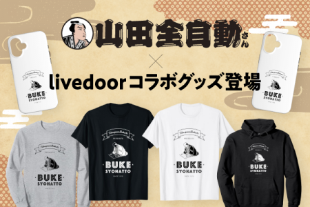 「livedoor Creators Studio」の第1弾となる今回は、独特なタッチと世界観で人気を集める山田全自動さんとコラボレーションし、オリジナルTシャツやスマートフォンケースなどのグッズを展開いたします。山田全自動さんの魅力あふれるユニークなデザインに歴史的なモチーフを取り入れた限定グッズとなっておりまして、今回発表した「武家諸法度シリーズ」の他にも新たなテーマをもとにした企画を順次展開し、コレクションとしてさらに充実させてまいります。