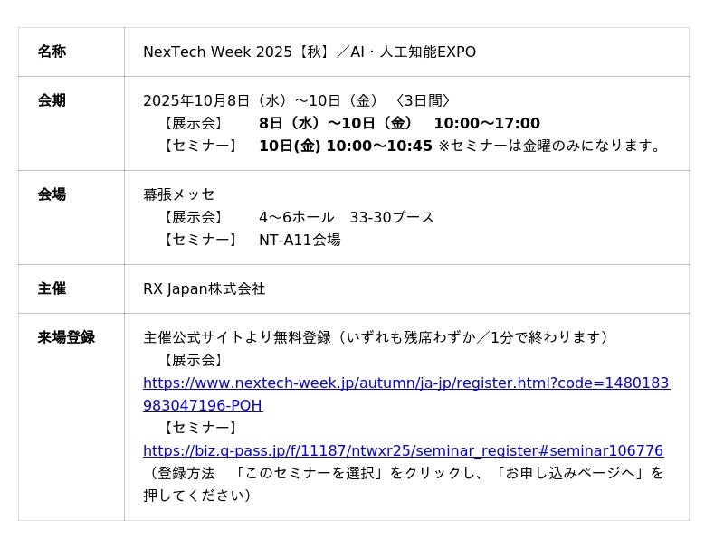 NexTech Week 2025秋ーAI・人工知能EXPO出展のお知らせ〈事前予約リンクあり〉