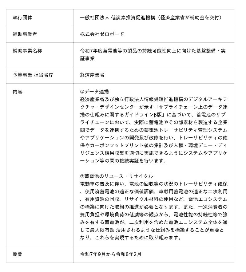 「Zeroboard for batteries」が経済産業省の実証・支援事業に4期連続の採択