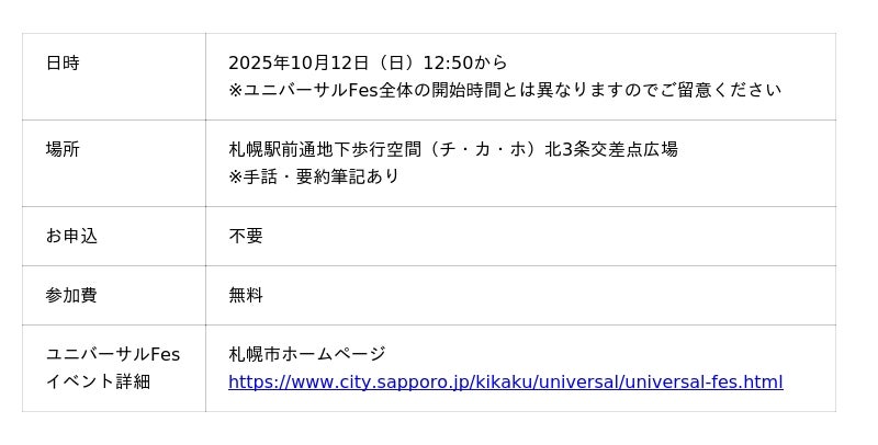 この条例を始め、札幌市が進める共生のまちづくりを身近に感じていただくための総合イベント「ユニバーサルFes」を開催します。