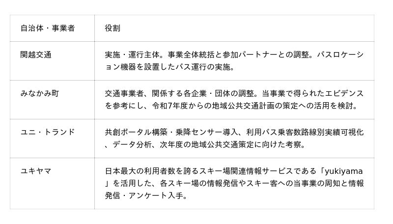 本プロジェクトは、実施主体である関越交通を中心に、共創パートナーとして、みなかみ町(阿部賢一町長)、地元観光協会、観光事業者の事業協力のもと推進する官民共創型の事業です。