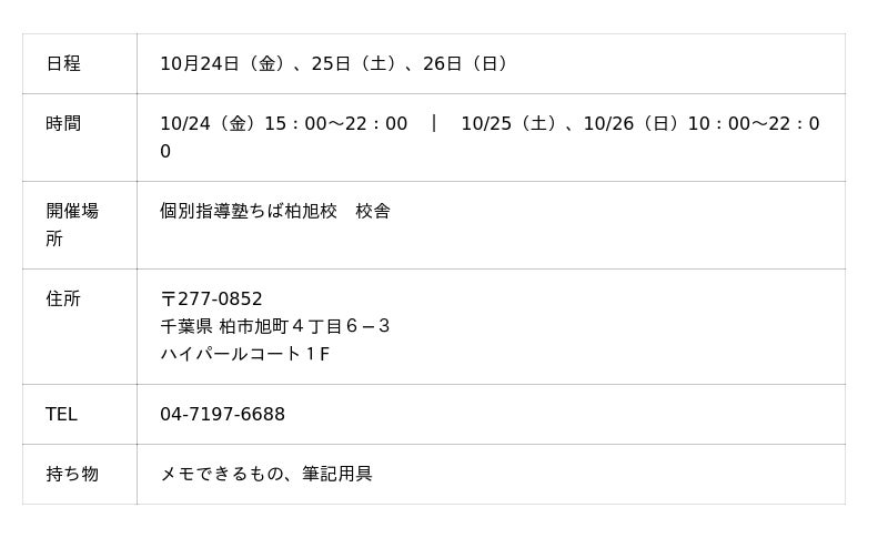 個別指導塾s-Liveちば柏旭校 開校前説明会の詳細