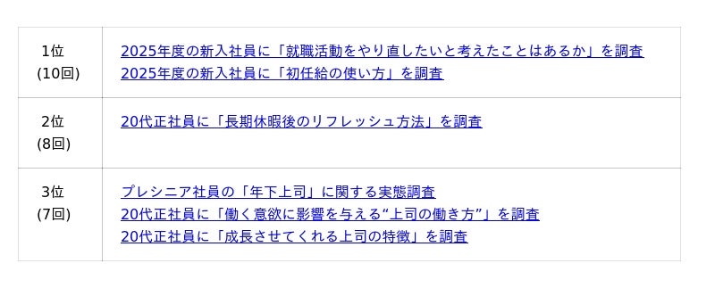 2025年は「新入社員」「上司」に関連した調査データに関心が集まる