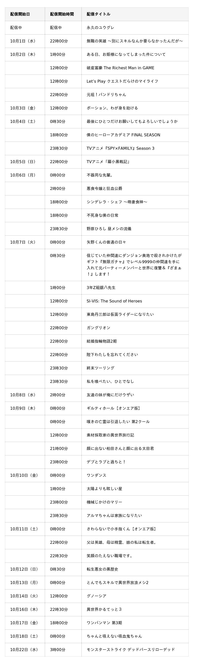 ┃2025年秋アニメ 初回配信スケジュール