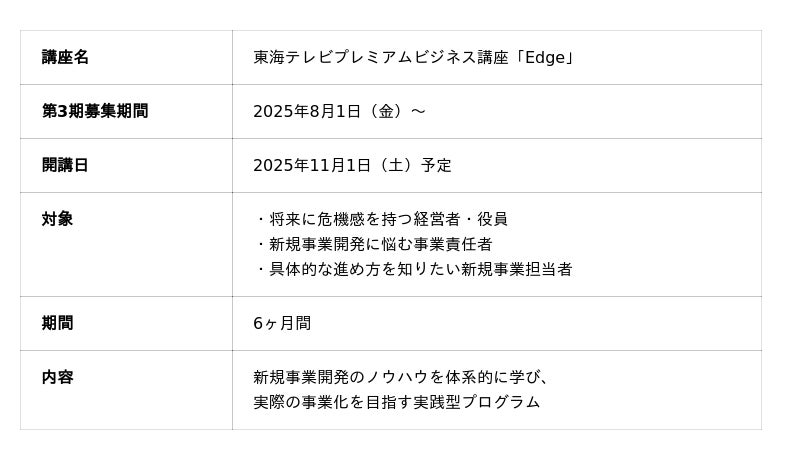 新規事業を「学び」「生み出し」「育て」「広げる」全て担うプラットフォーム東海テレビプレミアムビジネス講座「Edge」。