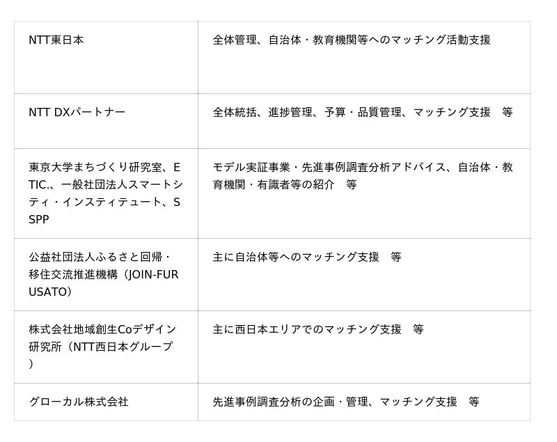 「ふるさとミライカレッジ」の運営等業務にはNTT東日本、NTT DXパートナーが採択され、東京大学まちづくり研究室、ETIC.等と連携し、総務省とともに国を挙げて課題解決プロジェクトを推進していきます。