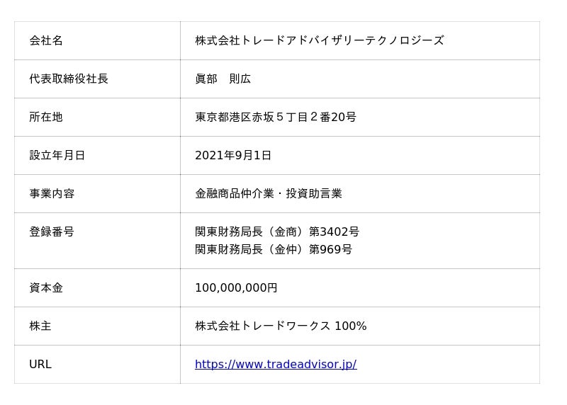 3. 株式会社トレードアドバイザリーテクノロジーズの概要