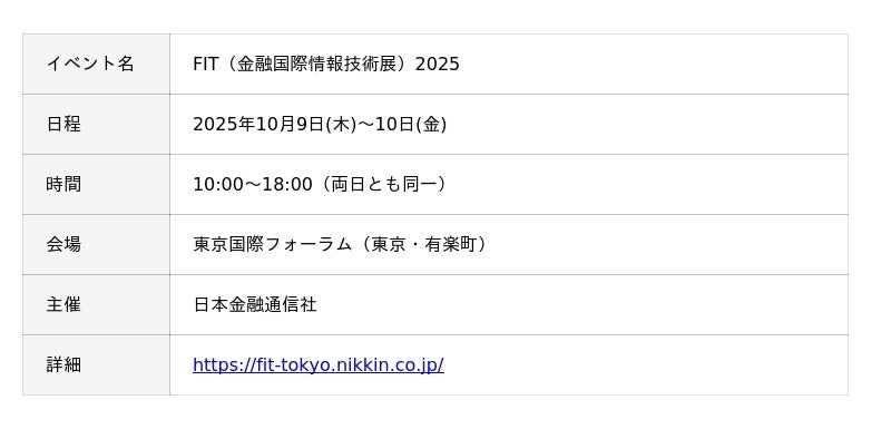 オプロは、2025年10月9日(木)~10日(金)に東京国際フォーラムで開催される「FIT(金融国際情報技術展)2025」に出展いたします。