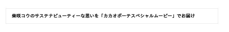 柴咲コウコメント美しさのためにしているのは心が心地よく整うこと。自分にも自然にも優しく、無理なく続けられることが、本当の美しさなのだと感じています。「カカオボーテ」は、アップサイクルして生まれたカカオセラミドを使っている上、美味しいのに美容もサポートしてくれる、まさに“サステナビューティー”なスイーツだと思います。