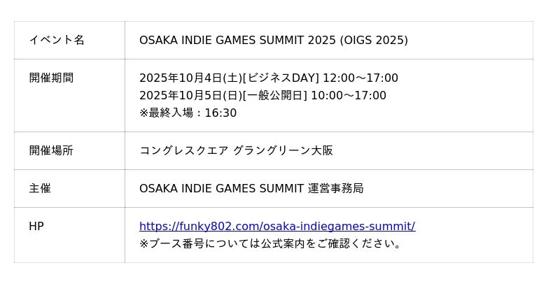 ■OSAKA INDIE GAMES SUMMIT 2025へ出展!