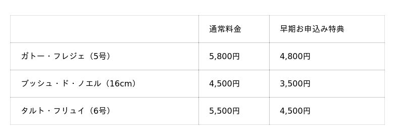 定番の「ガトー・フレジェ」、フレッシュな「タルト・フリュイ」、そして家族みんなで楽しめる「ブッシュ・ド・ノエル」は聖なる夜を華やかに彩ります。