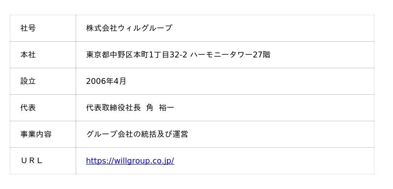 株式会社ウィルグループ(本社:東京都中野区、代表取締役社長 角 裕一)は、医療・福祉業界に特化した人材紹介会社の株式会社HR CAREER(本社:東京都渋谷区、代表取締役:森 聡介、以下HR CAREER)の株式を取得し、2025年10月1日付で子会社化しましたのでお知らせいたします。