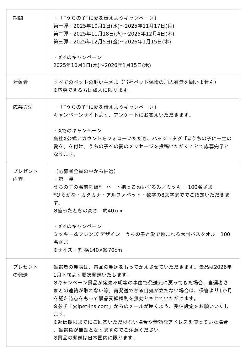 アイペット損害保険株式会社(本社:東京都江東区、代表取締役 執行役員社長:安田敦子 以下、当社)は、「“うちの子”に愛を伝えようキャンペーン」の第一弾を2025年10月1日(水)~2025年11月17日(月)までの期間で実施しますので、お知らせいたします。