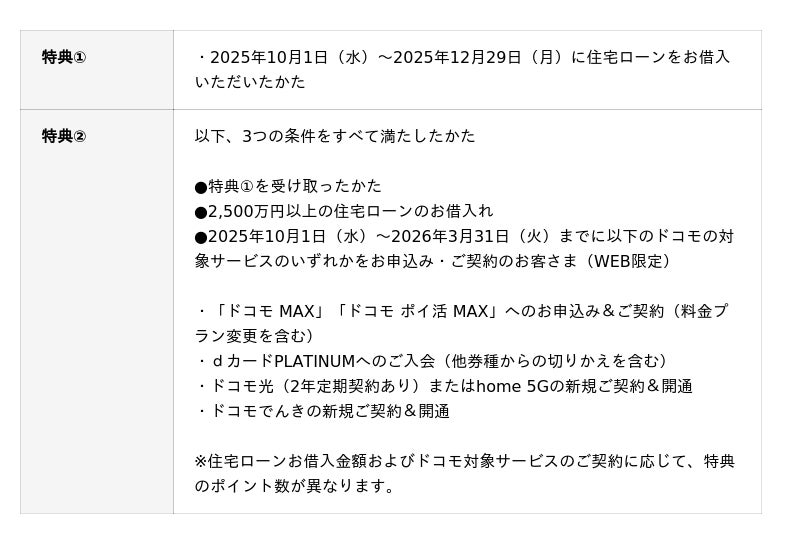 ※ 住宅ローンお借入金額およびドコモ対象サービスのご契約に応じて、特典のポイント数が異なります。