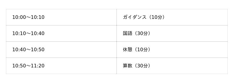 算数・国語 (各30分)、理科・社会(合わせて30分)