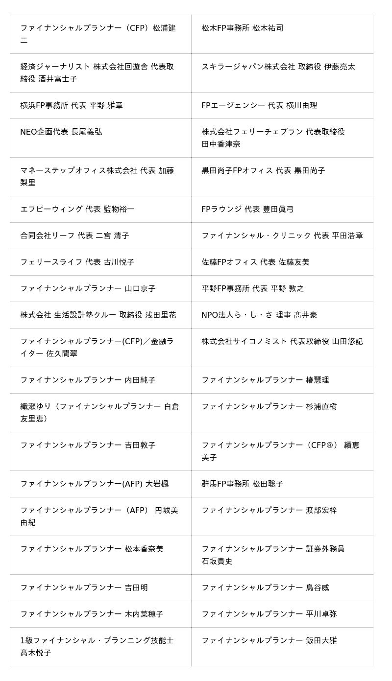 ▼ファイナンシャルプランナー(敬称略・順不同)