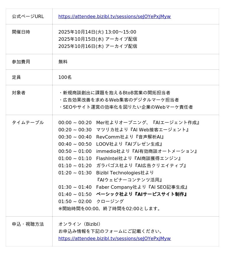ベーシック、10/14(火)に開催されるMer社主催のセミナー「業務が変わる!成果が伸びる! 10社から学ぶセールス・マーケ最新AIトレンド」に登壇