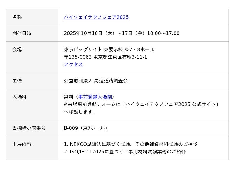 「ハイウェイテクノフェア2025」出展のお知らせ
