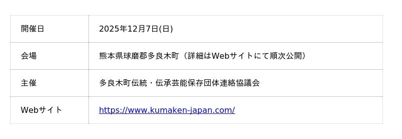 このたび多良木町伝統・伝承芸能保存団体連絡協議会は、熊本県多良木町にて球磨拳世界大会2025の開催を決定。及びそれに伴い、