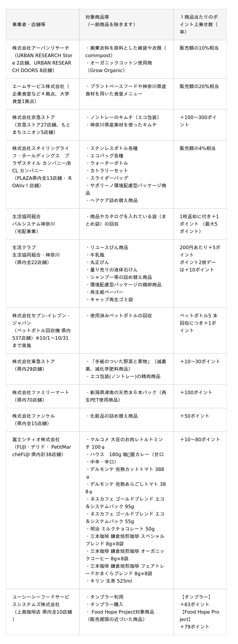 「かながわCO2CO2(コツコツ)ポイント+(プラス)」神奈川県内12事業者、約800店舗等に拡大して開始