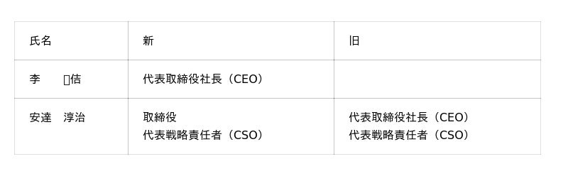 新たに李 炡佶(リ ジョンキル)が代表取締役社長に就任し、前代表取締役社長の安達淳治は、今後は戦略担当(Chief Strategy Officer: CSO)として引き続き当社の経営に携わります。