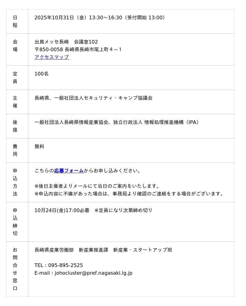 https://www.security-camp.or.jp/minicamp/nagasaki2025.html