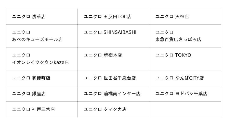 対象店舗: RE.UNIQLO STUDIOを設置した17店舗
