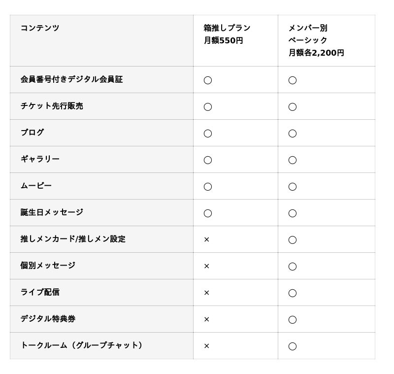 イベントチケットの先行販売をはじめ、会員限定のブログやギャラリー、ムービー、ライブ配信など、さまざまなコンテンツを展開。さらに、現地イベントで使える動画撮影券といった特典も用意しています。