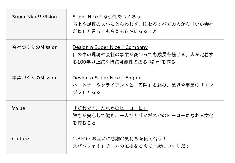 「Super Nice!!」は、創業当初から仲間同士が自然に口にし合い、互いを思いやり、誰かの力になる姿を映してきた言葉です。当社ではいわゆるMVVを「We are Super Nice!!」と題して、経営理念や行動指針を示しておりました。新しいロゴ策定においても、「We are Super Nice!!」という理念が大きな軸となっていますので、今回あらためて対外的にも公表することといたしました。