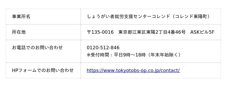 【本リリースに関するお問い合わせ先】※「就労選択支援についての問い合わせ」とお伝えください。
