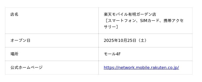 「有明ガーデン」に新店舗『明光義塾』『楽天モバイル』オープン!