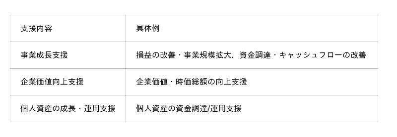 具体的には、当社のファイナンスに関する知見と、ユニークな事業モデルを活かし、地域事業者の経営と資産に関するあらゆる課題解決に取り組み、その成長をご支援します。