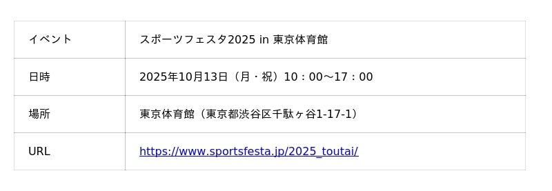 イ ベ ン ト:スポーツフェスタ2025 in 東京体育館