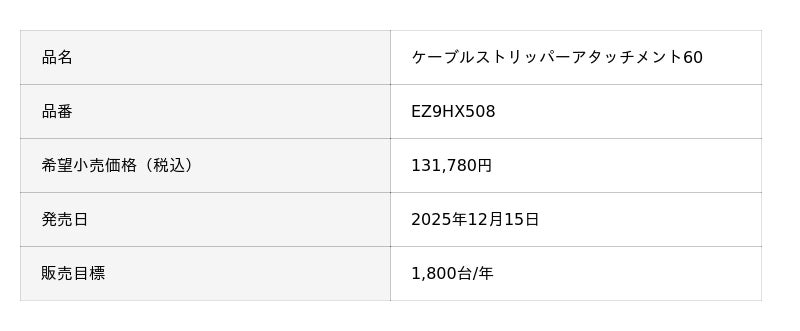 ▼[プレスリリース]ケーブルストリッパーアタッチメント60を新発売(2025年10月6日)