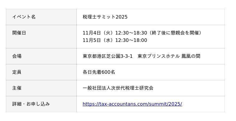 【イベント協賛】税理士業界最大の祭典『税理士サミット2025』に出展決定