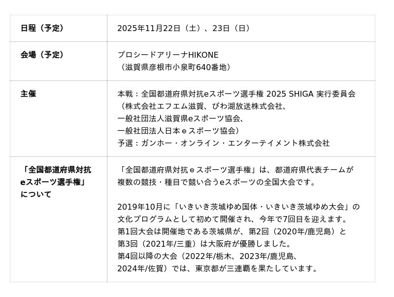 「全国都道府県対抗eスポーツ選手権 2025 SHIGA」概要