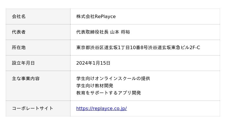 RePlayce は、NTTドコモグループの新規事業創出プログラム「docomo STARTUP」からスピンアウト※したスタートアップ企業で、キャリア探究・教育サービス「はたらく部」や通信制高校サポート校「HR 高等学院」の運営を通じて、「今の教育のあり方をアップデートする」をミッションに掲げ、若者の自己実現と日本社会を支える人材育成に取り組んでいます。