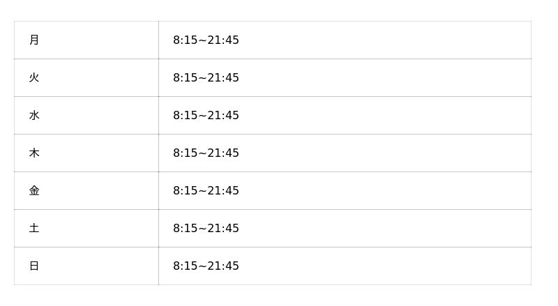 ※オープン時の営業時間となり、変更となっている可能性がございます。