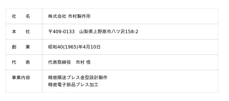 コネクタ端子の製造を行う株式会社 市村製作所(本社:山梨県上野原市、代表:市村 悟、