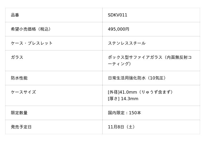 セイコーウオッチ株式会社(代表取締役会長 兼 CEO 兼 CCO:服部 真二、本社:東京都中央区)は、<キングセイコー>VANACから、『PEANUTS』とのコラボレーション数量限定モデルを、11月8日(土)より発売いたします。国内限定150本、希望小売価格は495,000円(税込)です。