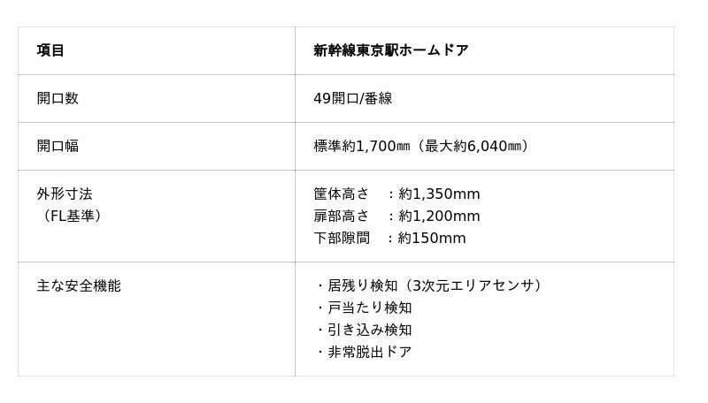 〇このたび、多くのお客さまにご利用いただいている新幹線東京駅に、安全レベルの向上を目的として、新幹線で世界初となる、ドア位置の異なる多くの編成に対応し、該当するホームドアを自動で開扉する新しい方式のホームドアを導入します。