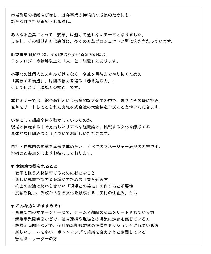 【 10/21 (火) 16:00 】丸紅の変革をリードするキーパーソンが語る 無料オンラインセミナーを開催